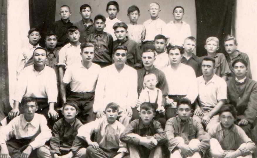Училище оқушылары мен училище басшылары және мұғалімдер. 50-жылдардың ортасы.