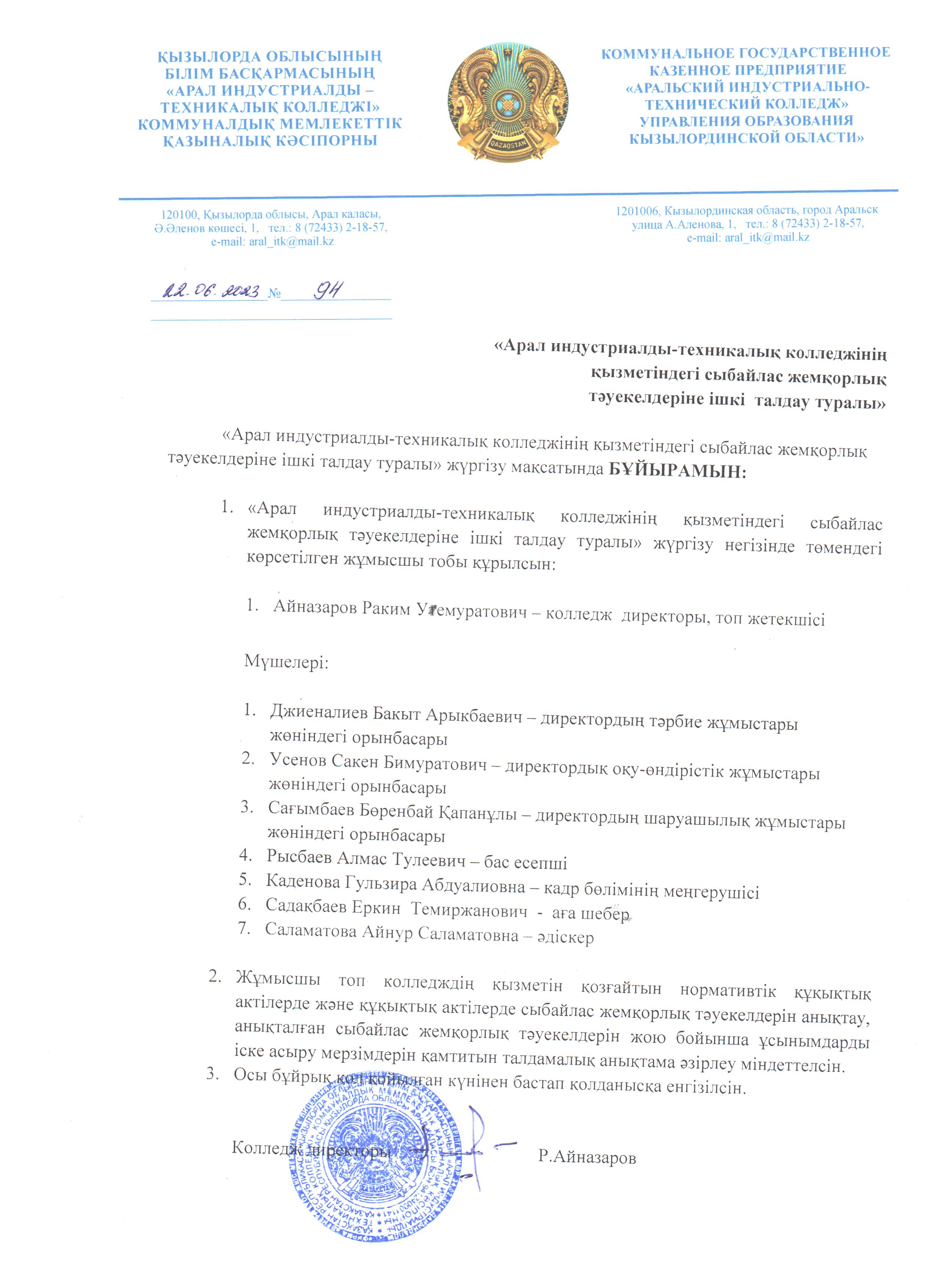 Арал индустриалды-техникалық колледжі қызметкерлеріне арналған сыбайлас жемқорлыққа қарсы іс-қимыл жөніндегі нұсқаулық