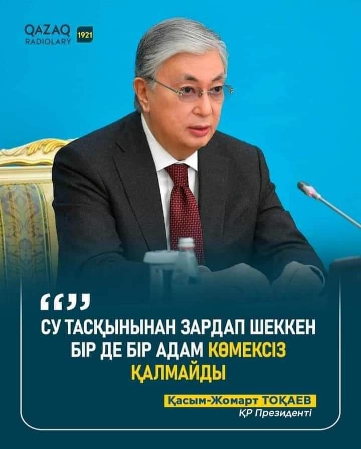 Қалыптасқан ауыр жағдайға байланысты Мемлекет басшысы Қасым – Жомарт Тоқаев өз үндеуінде тасқын судан зардап шеккен азаматтарға қаржылық және басқа да көмек беріліп, материалдық шығындар толық өтеліп, мемлекет бірде-бір адамды ескерусіз қалдырмайтынын айтты. Сондықтан апат орын алған аймақтағы ағайындарға сабыр тілеймін!