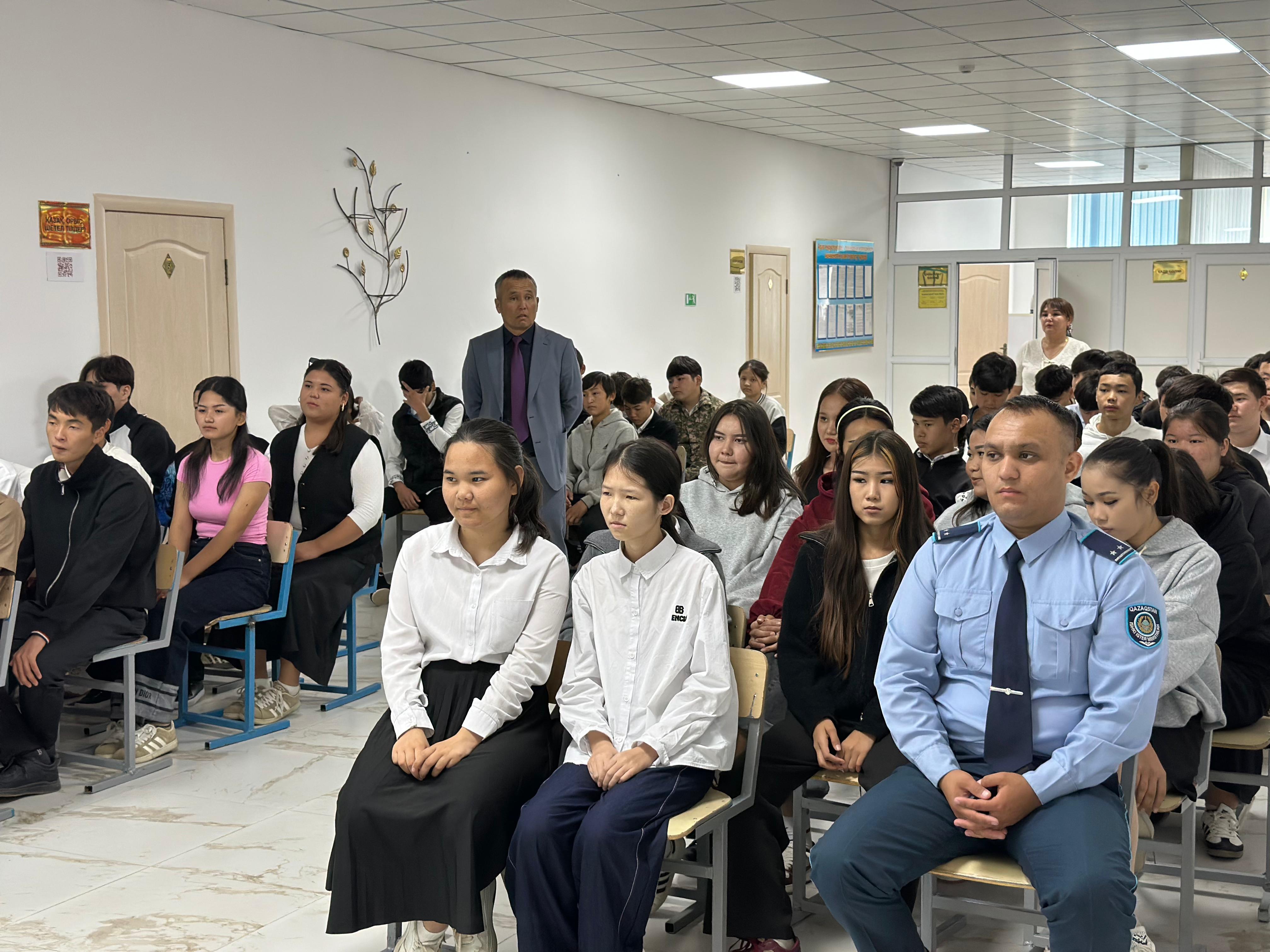 Арал индустриалды-техникалық колледжінде 2025 жылдың қыркүйек айының 30-шы жұлдызында білім алушыларға кәмелетке толмағандардың арасында құқық бұзушылықтың алдын алу бағытында құқық қорғау және жергілікті атқарушы органдармен бірлескен кездесу өткізілді.