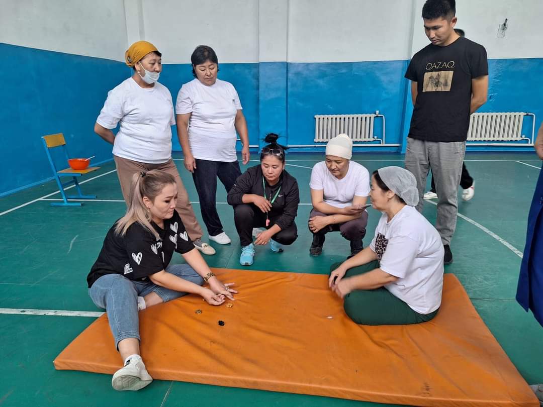Тренинг шеңберде тұрған оқытушылар туралы 2 мәліметпен бастауын тауып, «Мен ұнататын түс» ойынымен жалғасты. Сусындардың түстері арқылы топқа бөлініп, оқытушылар «Қар» арқылы сұрақтарға жауап берді. Тренинг жалғасын қазақ тілі және әдебиеті пәнінің оқытушысы П. А. Қанатова «Сен білетін бір мәлімет және білмейтін 2 мәлімет» айдарымен жалғасты. Креативтік ойлау қабілетін көрсете білген ұстаз «Ұжым татулығы» деген әңгіме -аңызды айта отырып, ұжым мүшелеріне ерекше эмоционалды жігер берді. Тренингтің келесі бөлімінде түрлі-түсті қағаздар таратылып, құрастырған қағаздан» Кәсіподақ», «Игі істер», «Бастама» сөздеріне мағлұмат берілді. «Ауызбіршілік», «Сенім», «Сыйластық» топтары «Сөйлемді аяқта», «Күлкі – көңіл ажары» әдістерімен өткізге тренинг ұжым арасындағы байланысты нығайтып, бір-бірін кеңірек танып білуге, көңіл-күйді көтеруге ерекше ықпал етті.