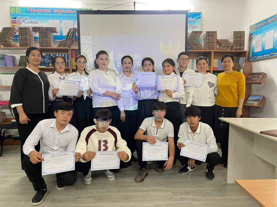 Колледж кітапханасында «Оқуға құштар колледж», «Балалар кітапханасы» бағдарламасы аясында кітапханашы Г. Бүркітова мен жатақхана тәрбиешілері Г. Кушерова, Г. Жұмахмет және А. Мырзабаевалардың ұйымдастыруымен жатақхананың I курс студентеріне 25 қазан - Республика күніне орай патриоттық өлең оқу кеші өткізілді.
