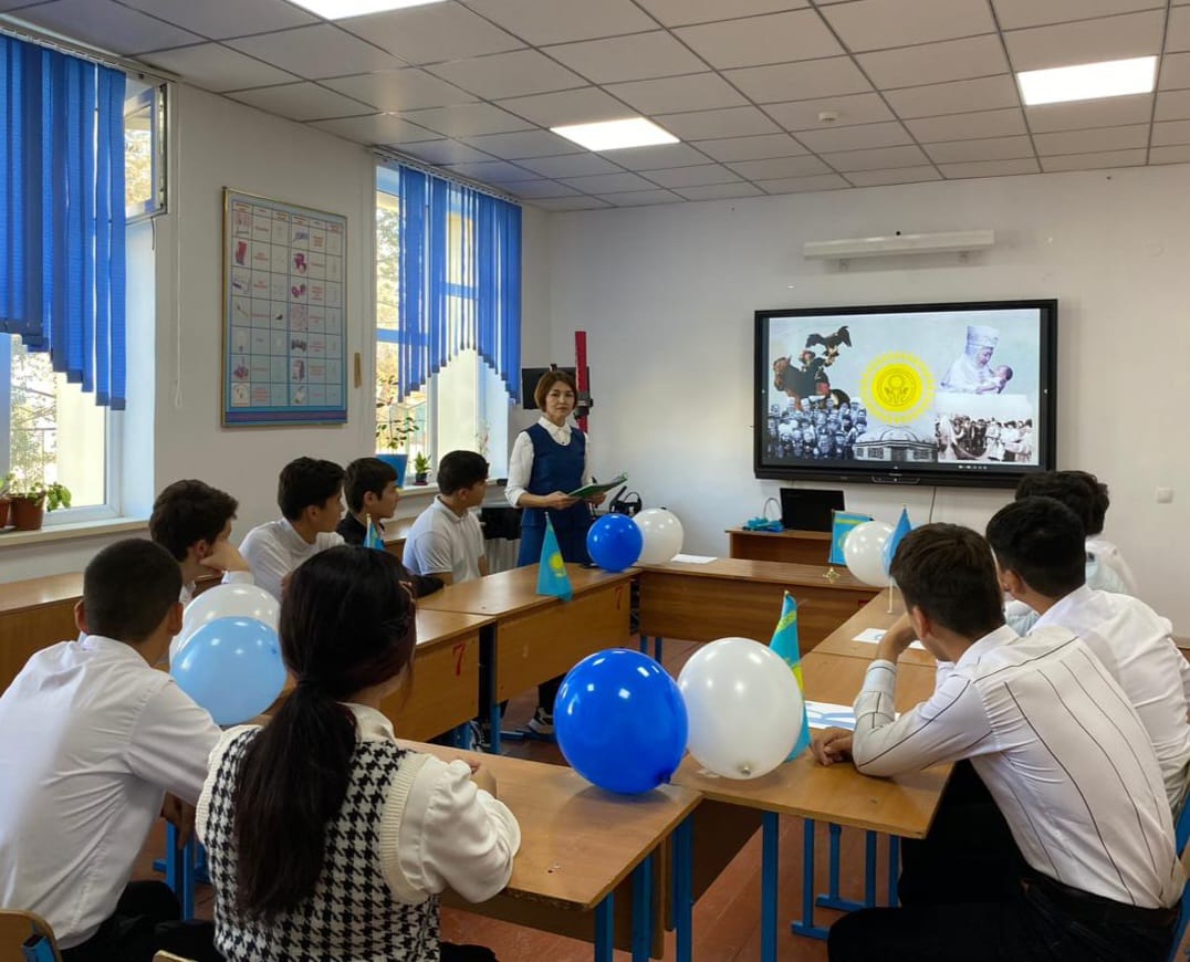 Президентіміз Қасым- Жомарт Кемелұлы Тоқаевтың мына сөздерімен тәрбие сағатымыздың маңыздылығы ашыла түсті: "Республика күні елдің мемлекет құру жолындағы тарихи қадамының символы болуы керек. Тәуелсіздік алуға зор үлес қосқан ұлттық батырларымызға тағзым күні ретінде аталып өтілуі керек".