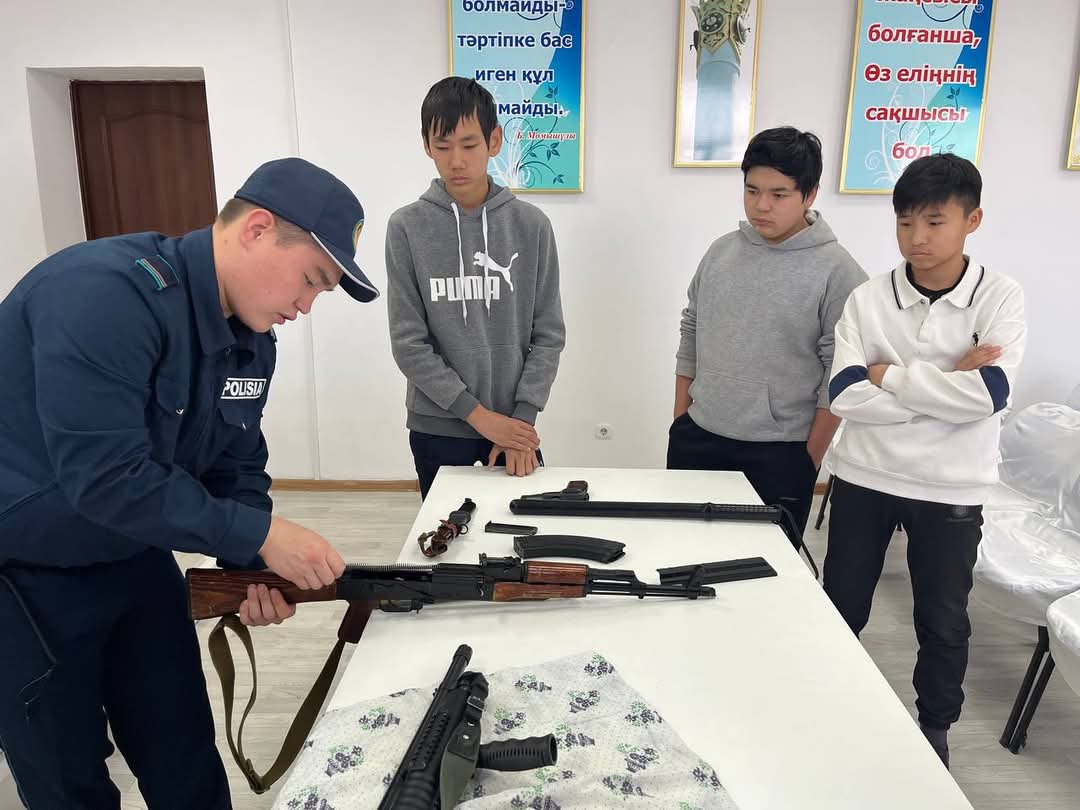 Шара барысында білім алушылар тарапынан туындаған сұрақтарға жауап беріліп, суық қаруларды көру, шашу, жинау мен қауіп-қатері және оларды қолданған жағдайда берілетін жаза түрлері туралы да ақпарат берілді.